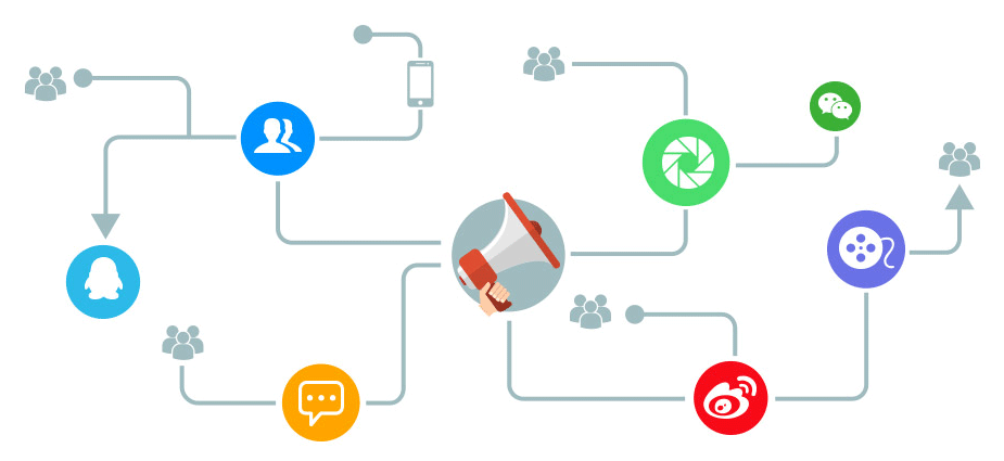 通过微信朋友圈、微信好友、QQ群、QQ好友、微博、SNS、自媒体等渠道进行分享式传播迎合用户心理,简单便捷易于传播。